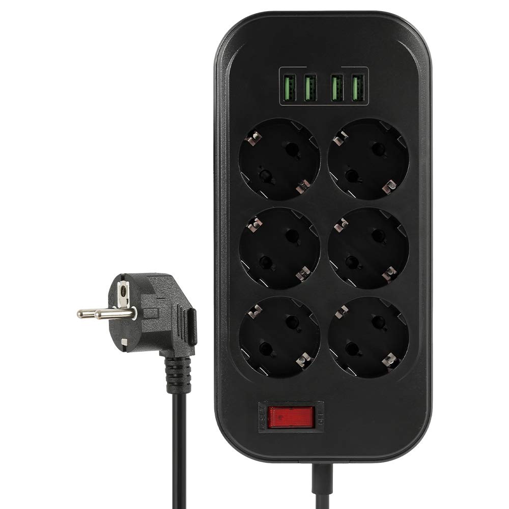 Multiprise Electrique avec 6 Prises et 4 USB 250V/10A Multiprise Parasurtenseur Parafoudre et Surtension 2500W avec Interrupteur, Câble de 2m pour Smartphone Tablette Ordinateur