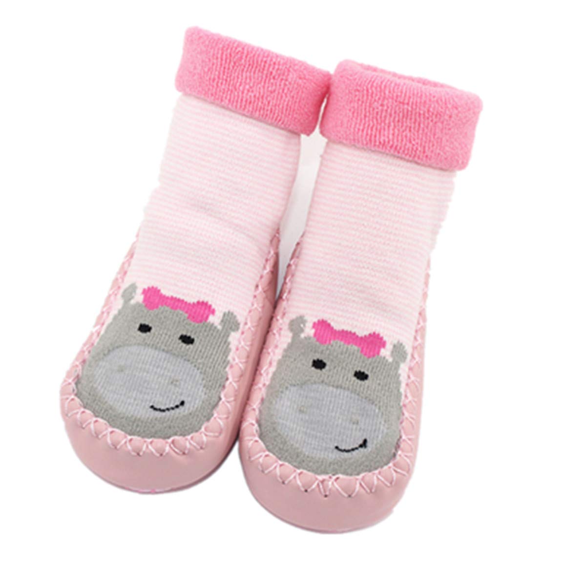 Robemon_Chaussettes Bébé Cadeaux Enfants Filles Garçons Automne Hiver Épaissi Anti-dérapantes Impression Animale Colle Seul Chaussures Hautes Jambes Plancher Chaussettes