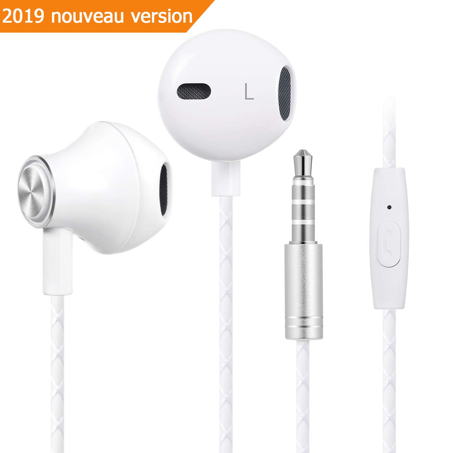 Bestfy écouteurs samsung - Intra auriculaire Oreillettes Filaires Casque Anti-Bruit avec Microphone Universel avec Jack 3,5mm, compatible pour iPhone, Samsung, Smartphones Android, MP3, (Blanc)